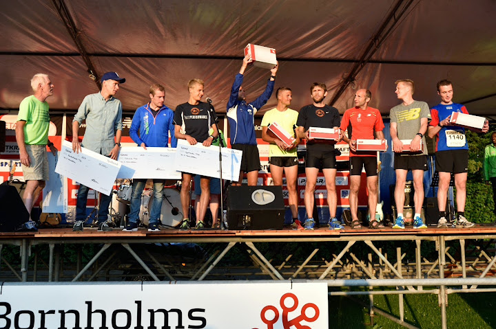 However, this year I plan to take on the Lidingoloppet in Sept, which requires that I stay a bit fitter during the summer than I otherwise would. I thus decided a good plan would be to take a mid-summer training week, in order to give me a bit of a kick to keep running. Etape Bornholm presented a ideal opportunity, relatively easy to get to from Lund, with 5 mixed terrain races over 5 days totalling a marathon in distance. The event usually attracts some of the best runners in Scandinavia (and some top international ones), to a certain extent because it's the only game in town at this time of year with few other races around and because there are some decent prizes (25,000Kr to the winner, with prizes down to 10th). It's also held on a very nice summer holiday island :-)